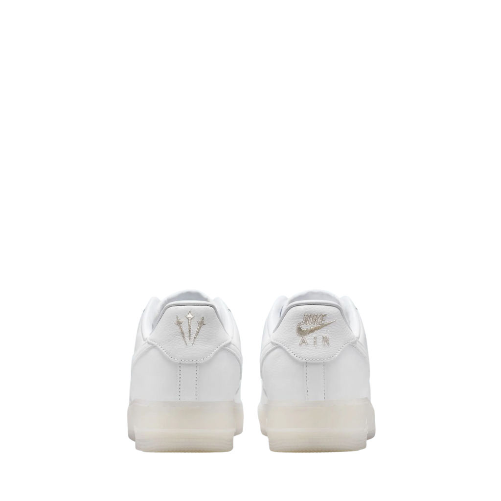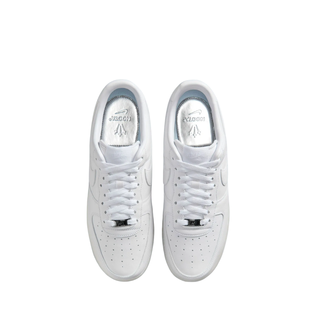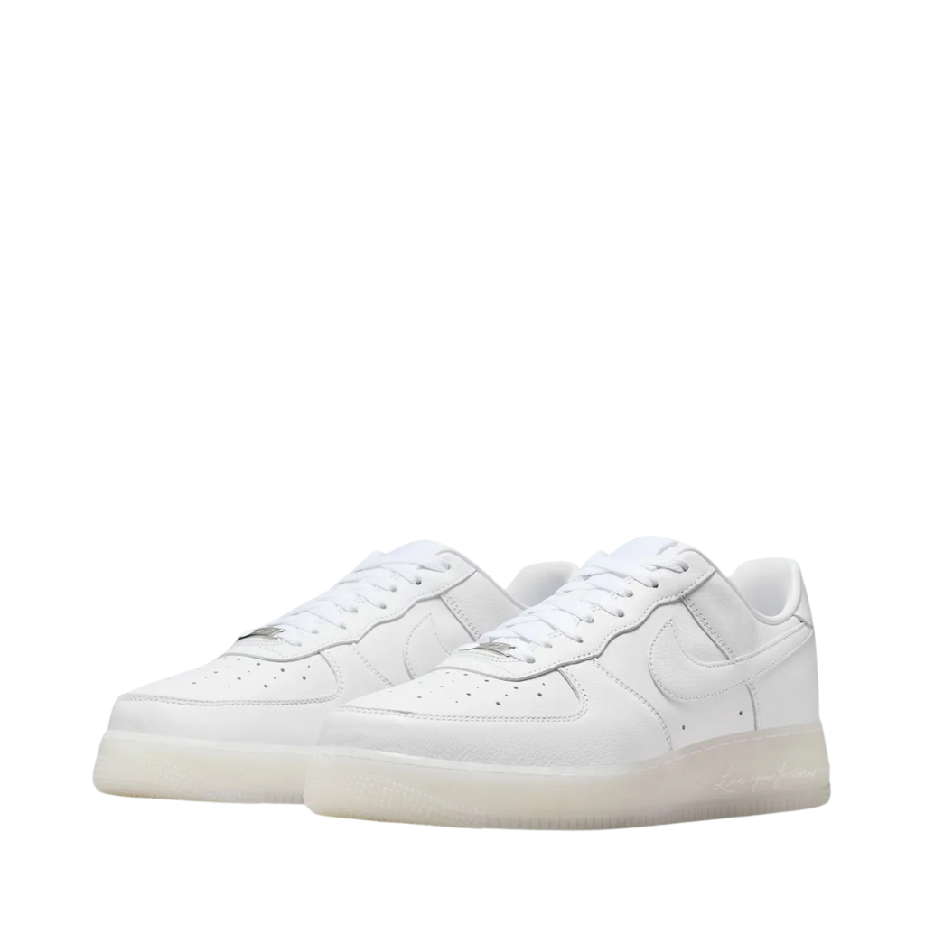 La sencilla ejecución de las NOCTA Air Force 1 brilla de nuevo con este clásico modificado que se presenta en una combinación de colores prácticamente blanca. Presentan una parte superior blanca con una entresuela opaca ligeramente amarillenta que luce el texto "Love You Forever" en lugar de las clásicas letras AIR. En la parte superior se encuentra el logotipo de tres estrellas de NOCTA en el talón izquierdo, frente al tratamiento Nike Air estándar.