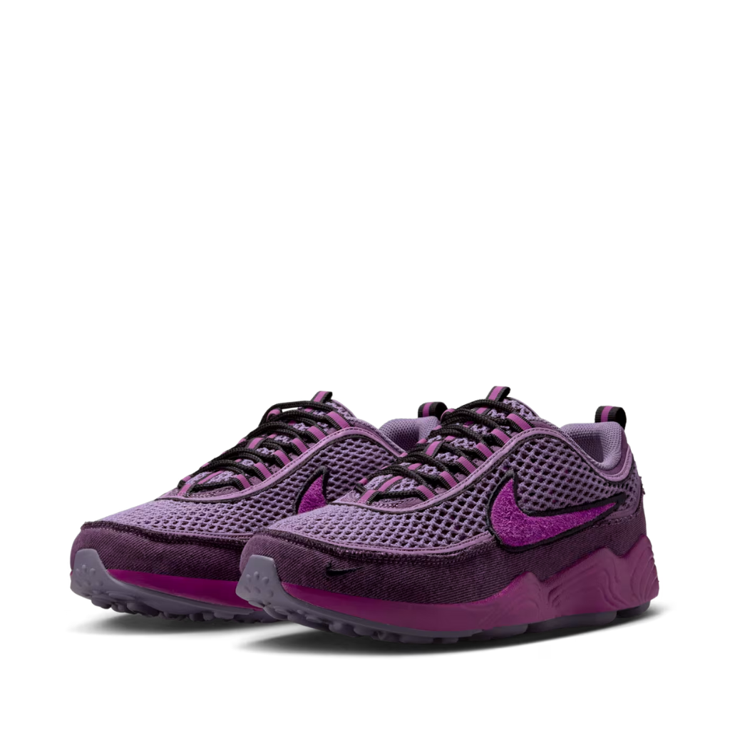 El icónico modelo de correr regresa, ahora con un renovado diseño urbano. Lanzados en 1997, los Air Zoom Spiridon jugaron un papel fundamental en la evolución de los diseños de presión localizada de Nike creados para mejorar la amortiguación de los runners. Esta audaz edición rompe con las combinaciones de colores más clásicas y apuesta por una mezcla vibrante de fucsia cálido, Viotech y negro. Los bordes con diseño reflejante, la malla transpirable y la entresuela de espuma suave rinden homenaje al modelo original. La amortiguación elástica Air Zoom de largo completo de los Spiridon te conectan con el pasado, el presente y el futuro de la comodidad.