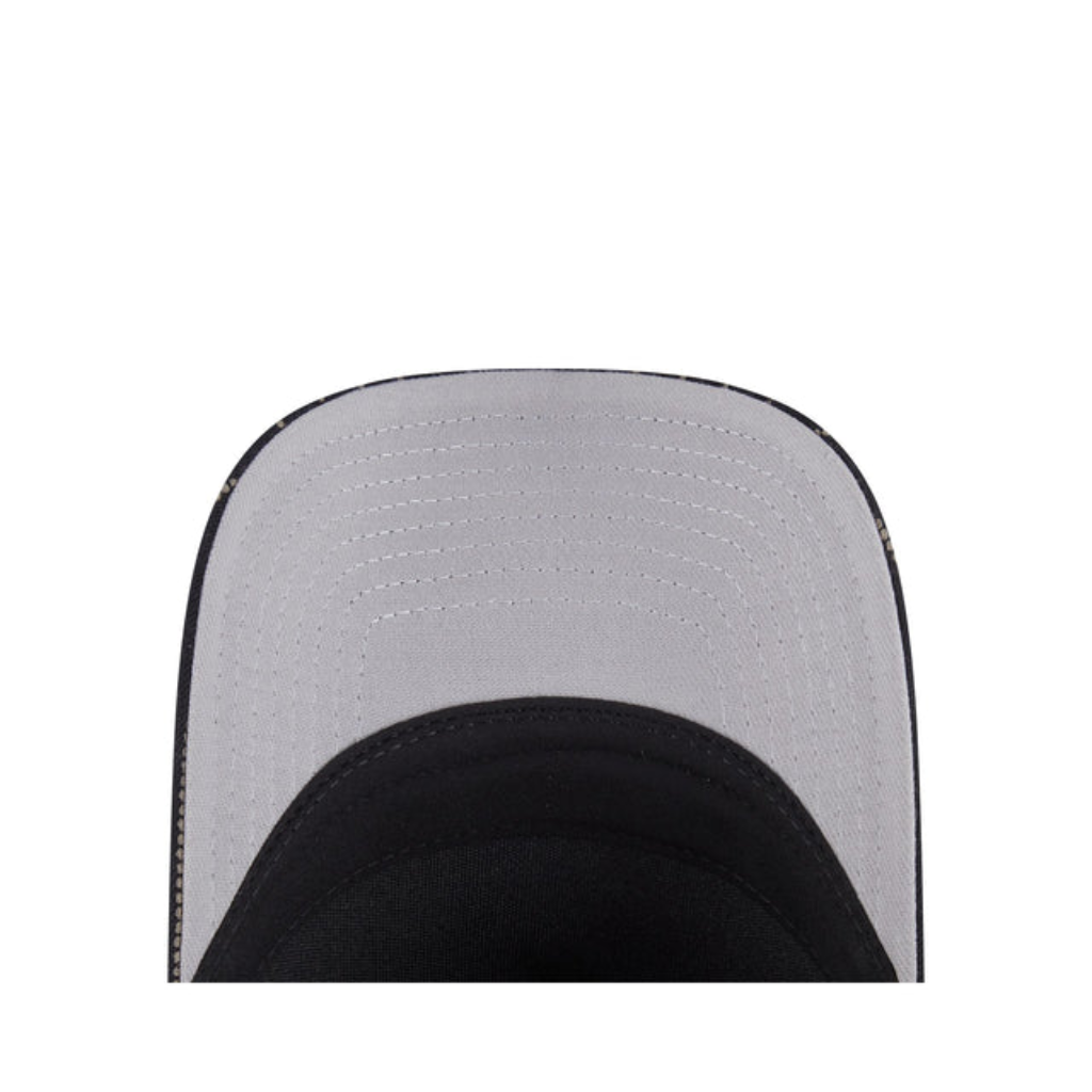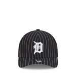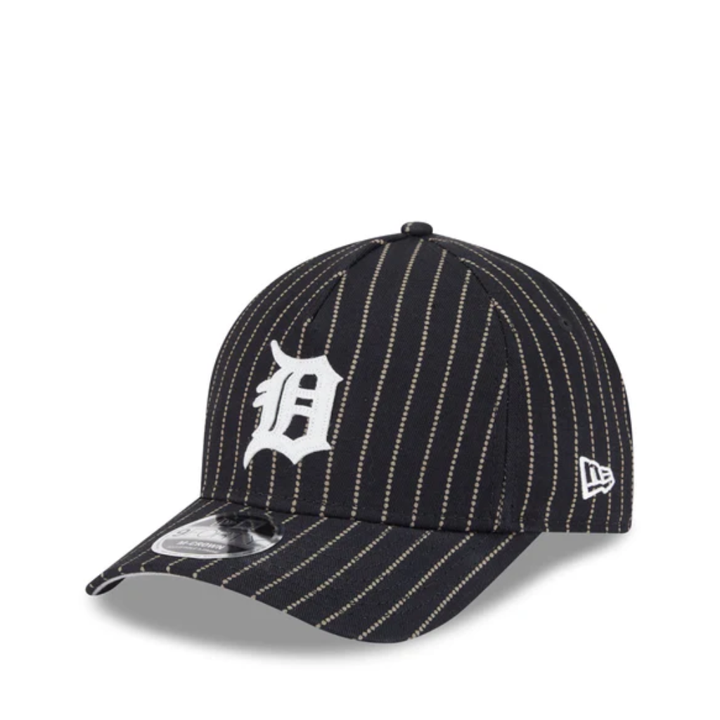 El modelo Three Looms Pinstripe 9FORTY A-Frame M-Crown ajustable de los Detroit Tigers presenta un aplique de fieltro del logotipo vintage de los Tigers en una corona frontal de perfil alto, ajustada y contorneada, confeccionada en mezclilla con orillo de raya diplomática punteada de la fábrica japonesa Three Looms. También incluye un parche de Three Looms Mill en el interior de la corona y una inscripción vintage del equipo en la parte trasera, sobre una correa de cuero ajustable con cierre de hebilla.