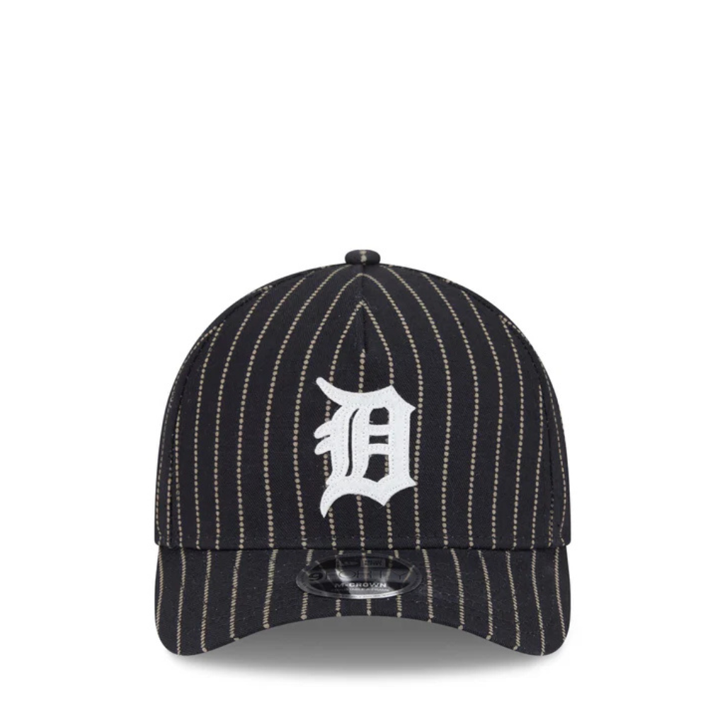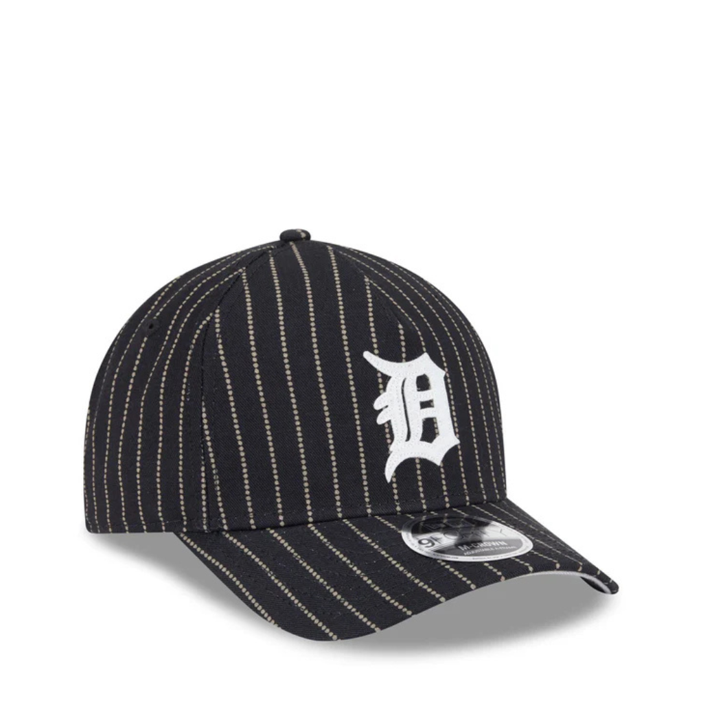 El Detroit Tigers Three Looms Pinstripe 9FORTY A-Frame M-Crown Adjustable presenta un logotipo vintage de Tigers con apliques de fieltro en una corona frontal de alto perfil pellizada y contorneada hecha en un denim de rayas punteada de la fábrica de telas japonesas Three Looms. Las características adicionales incluyen un detalle de parche Three Looms Mill en el interior de la corona, y una marca del equipo vintage en la parte posterior sobre una correa de cuero ajustable y una carcasa con hebilla.