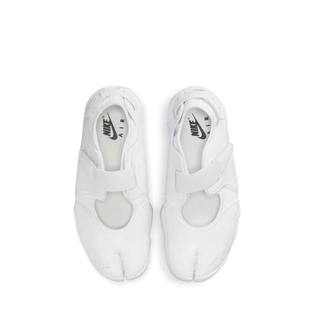 ¿Unos tenis o unas sandalias? Que otras personas lo decidan mientras te relajas con estilo. Estos Air Rift cuentan con una parte superior suave de cuero de plena flor con correas de cierre por contacto para ofrecer un ajuste sencillo. El diseño con punta dividida brinda estabilidad y comodidad en cada paso, a la vez que añade una estética divertida a tu look. Y ya que te mereces un descanso, agregamos una espuma suave en la entresuela con amortiguación Air en el talón para que los pies se sientan como si estuvieran de vacaciones.