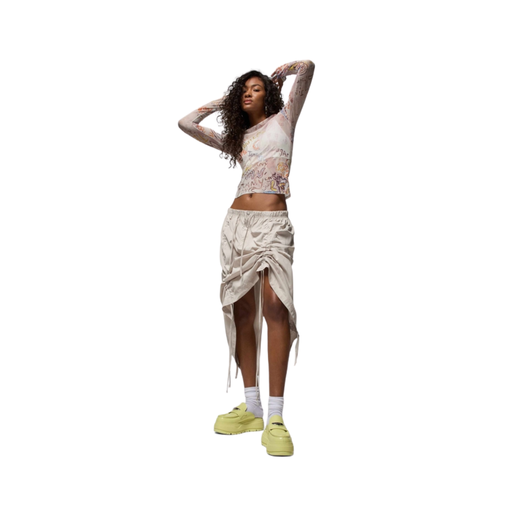 Ligera y amplia, esta falda de talle medio ofrece un estilo versátil. El suave tejido Woven le da un look elegante, mientras que las agujetas en las costuras te permiten ajustar el dobladillo. ¿Cómo los usarás?