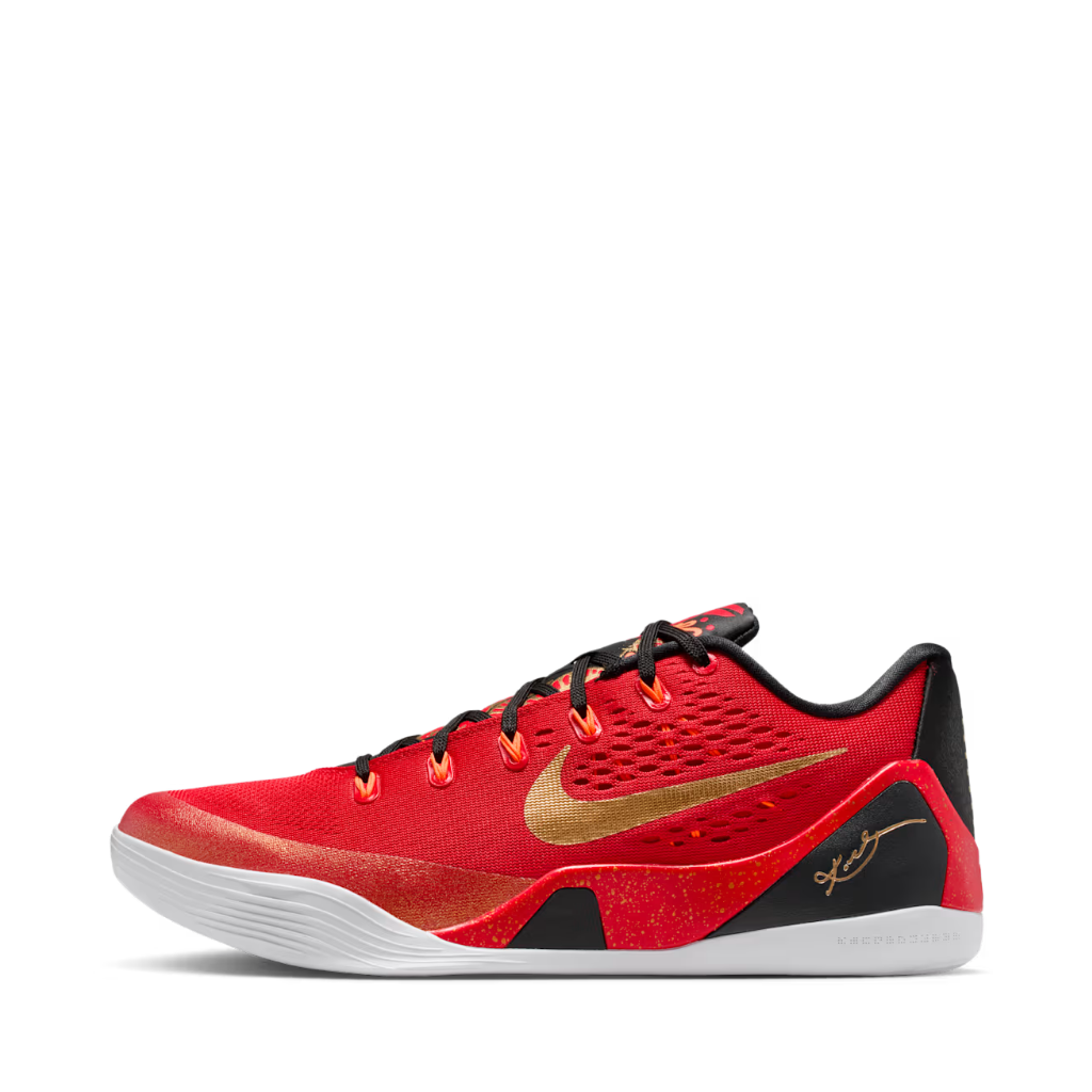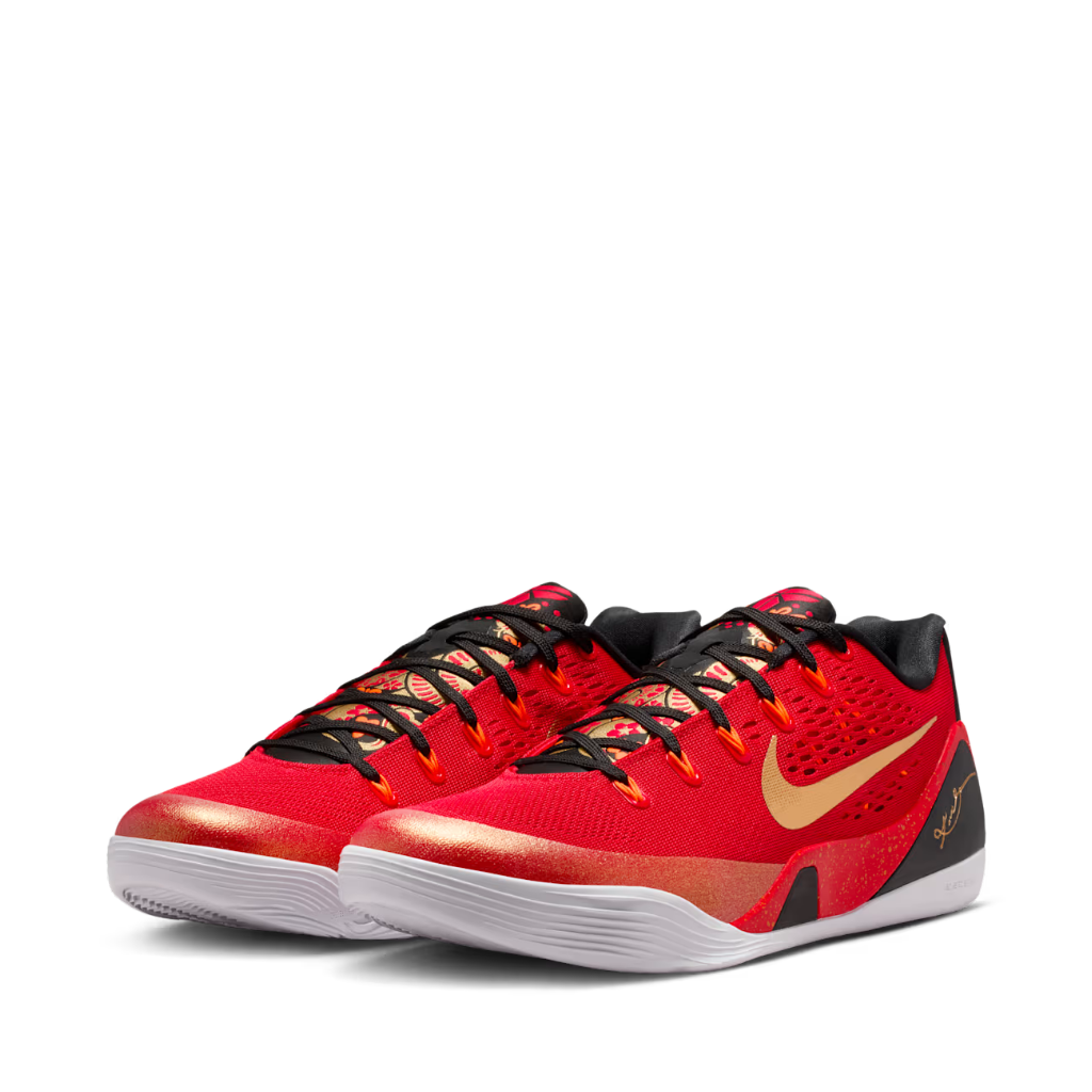 Kobe dejó una huella imborrable en China. Organizó campamentos, clínicas y eventos de básquetbol para jóvenes, con lo que creó un fuerte vínculo con sus fans a lo largo de su carrera. En homenaje, los Kobe 9 Low Protro EM regresan por primera vez desde 2014 con malla diseñada estratégicamente en la parte superior en color rojo universitario, detalles en oro metalizado y negro, y el diseño de dos serpientes en la lengüeta, como símbolo de dualidad y equilibrio.