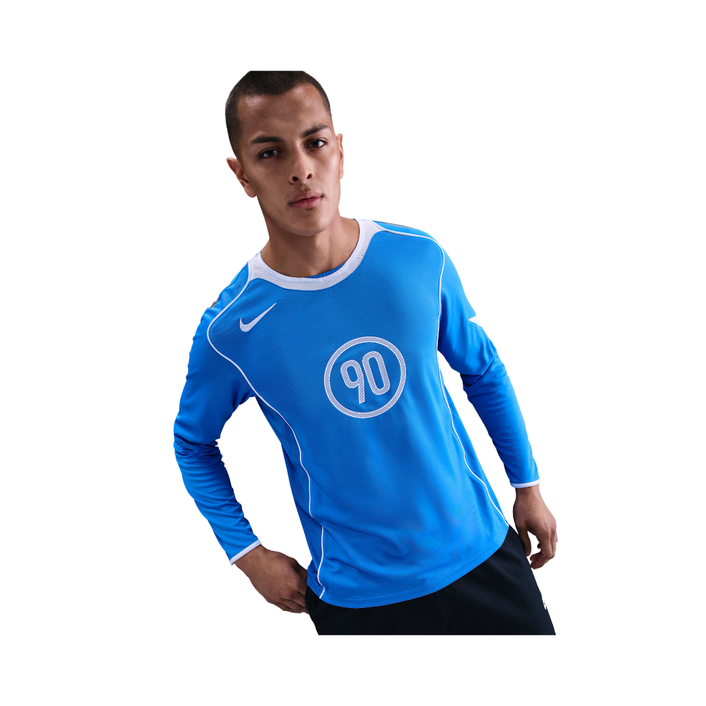 Esta playera absorbente de sudor inspirada en los jerseys rinde homenaje a la herencia Total 90 de Nike. La tela transpirable mantiene la frescura y comodidad; el diseño le da un toque de mediados de los años 2000 a tu estilo para el campo y fuera de él.